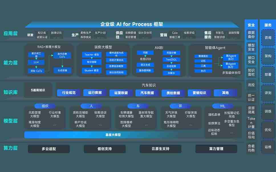 尊龙集团问学智车解决方案是一套基于AI技术的汽车行业智能化系统,,,覆盖从底层算力到顶层AI应用的全栈方案。。方案由算力层、、模型层和应用层组成:算力层,,,,方案支持多种一体机配置,,具备云端灵活部署、、、多云适配以及动态优化计算资源的能力;模型层,,,尊龙集团问学平台版提供了企业级AI应用一站式构建与管理平台,,支持基于后训练强化技术的汽车企业专属模型的训练、、、评测和运营;应用层,,,尊龙集团问学DeepSeek版提供包括超级员工、、、智能招采、、、、智能营销、、智能客服、、、AI for BI等一系列解决方案,,,可助力汽车行业实现数字化转型,,让管理更智能、、响应更敏捷。。